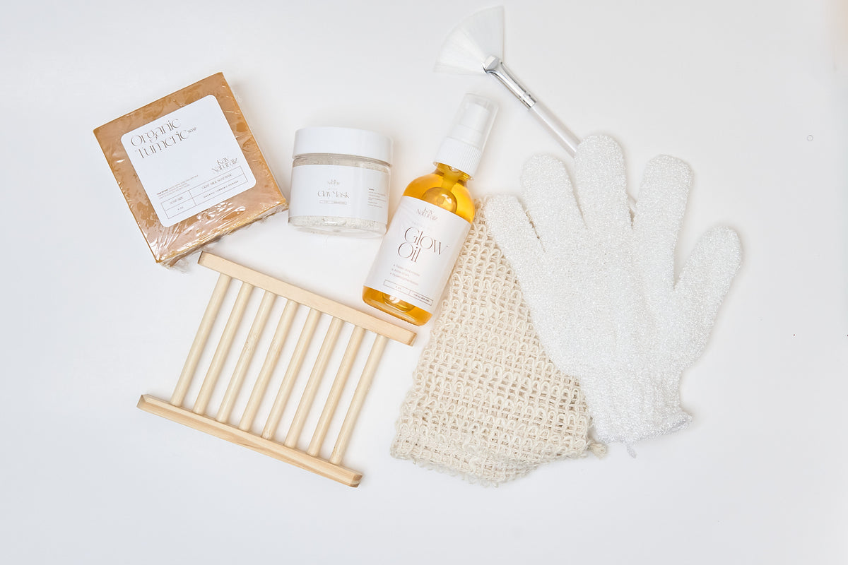 The ultimate collection for healthy, radiant skin. This bundle includes every Kaynaturalz favorite — from our Turmeric or Oat Soap Bar to our Glow Oil, Detox Clay Mask, and Exfoliating Gloves. Designed to cleanse, nourish, and restore your glow from head to toe.